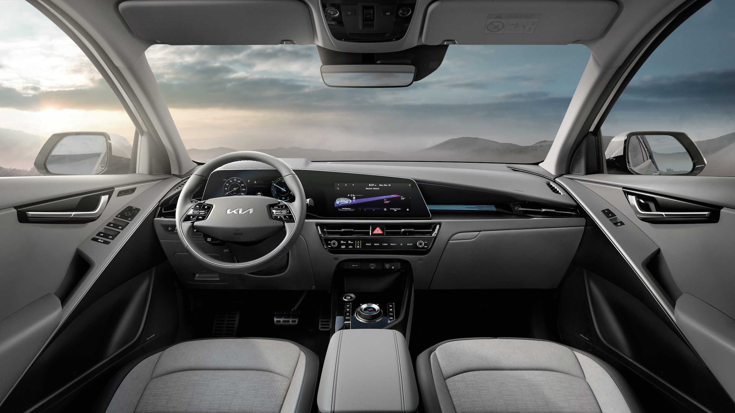 The 2026 Niro EV comes with advanced technology and safety features to enhance your driving experience. Standard features include a 10.25-inch touchscreen display with navigation, Apple CarPlay®, Android Auto™, and a premium audio system. The Kia Connect system provides convenient access to remote services and real-time vehicle information.